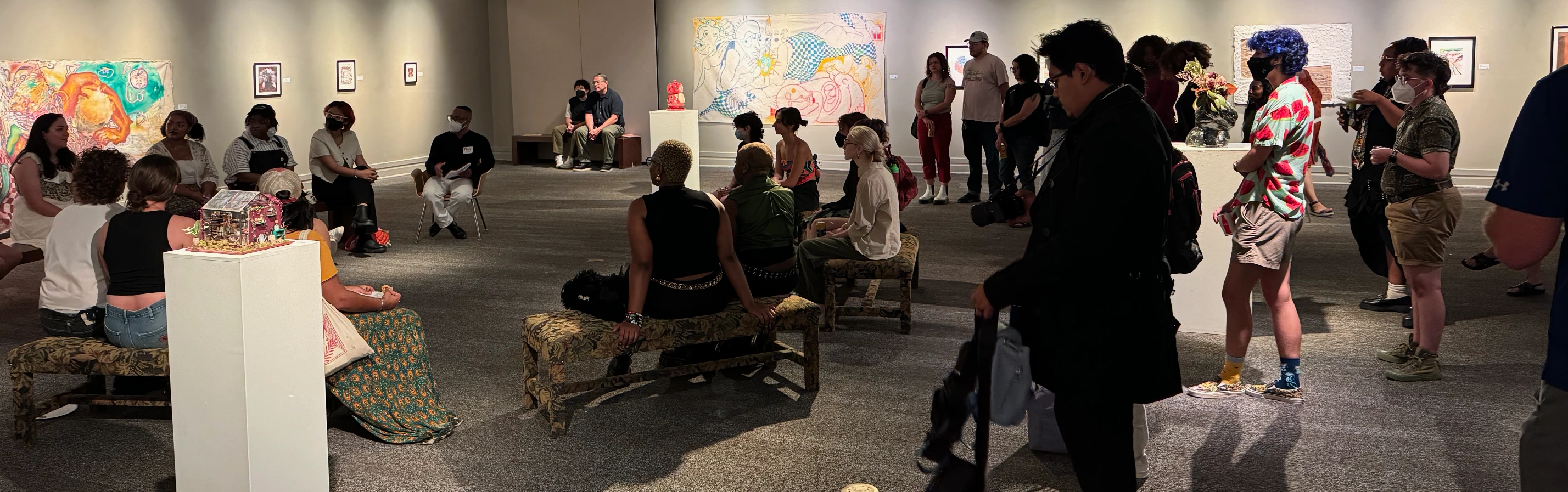 Haptic Happenings opened to the public on August 6th with an evening gallery reception, culminating in an artists talk moderated by Nori McDuffie. Of nearly fifty submissions, twenty-nine pieces from twenty-two youth artists were on display, covering a range of mediums including painting, collage, wall-scale sculptures, and crocheted textiles. During the exhibition run, a public vote was held for Best in Show, with two runner ups. The results were announced and prize money awarded at the closing ceremony on September 30th.